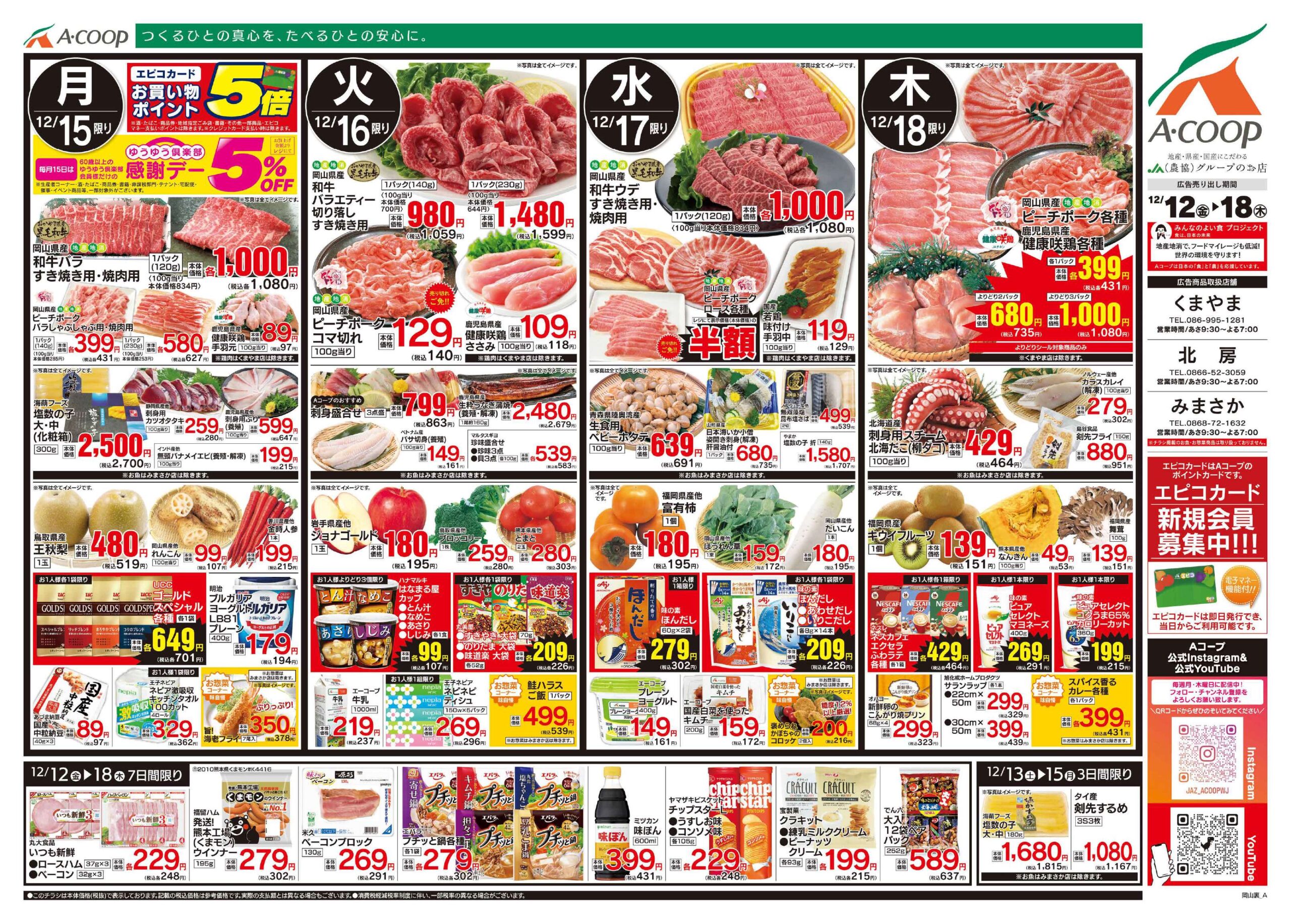 黒大豆の生産量は日本一で、その他にも多くの農産物が生産されています。特に旬になると桃・ピオーネ・梨は、たくさんのお客様から依頼され、Aコープから全国に直送されております。またJA勝英管内の”奈義牛”や”奈義の黒豚”の販売もしておりますので一度ご賞味してみてください。