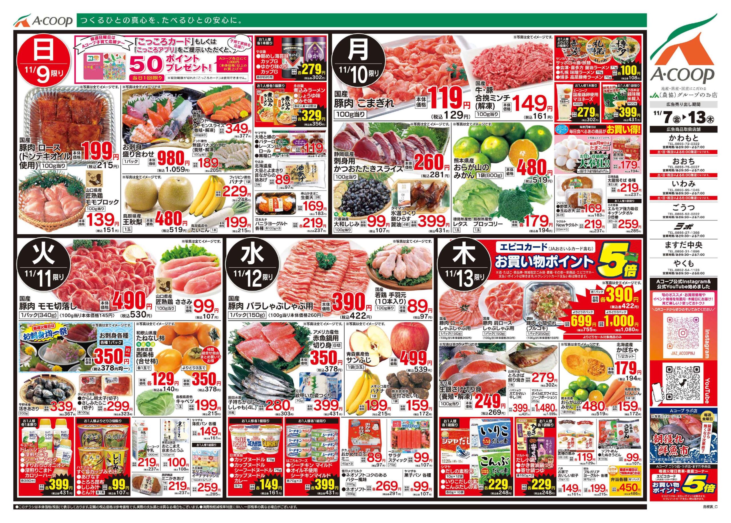Aコープおおち店のチラシ