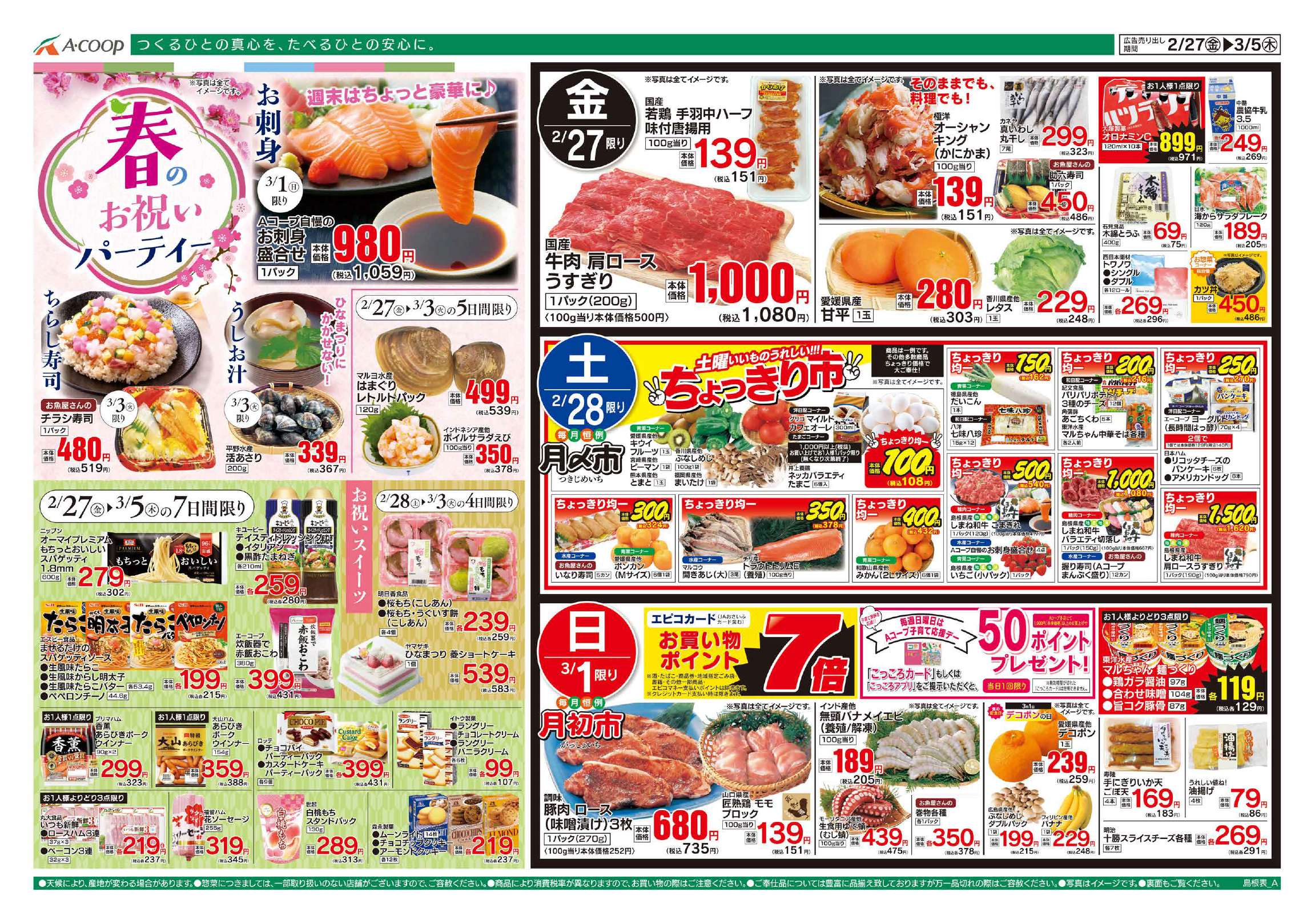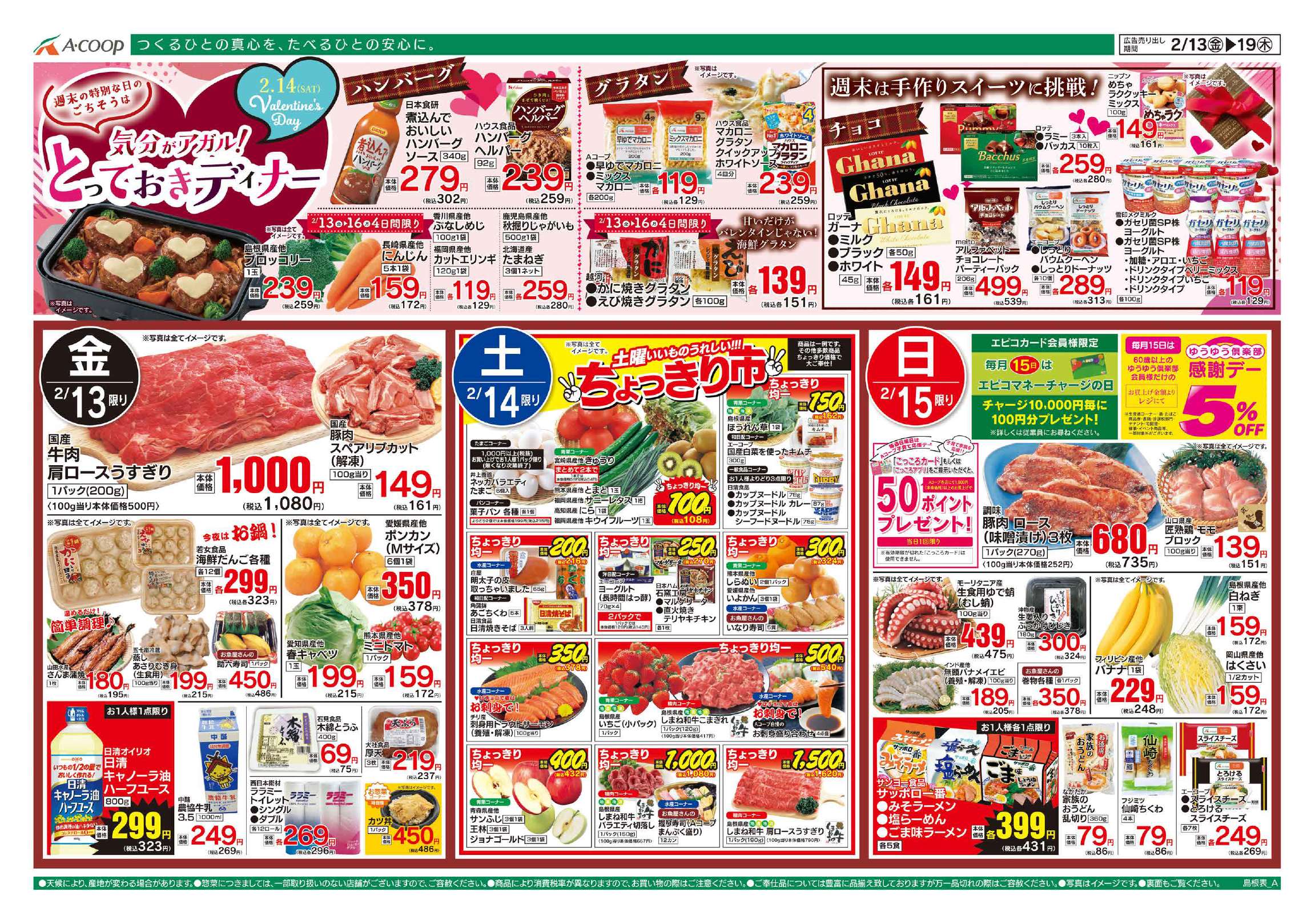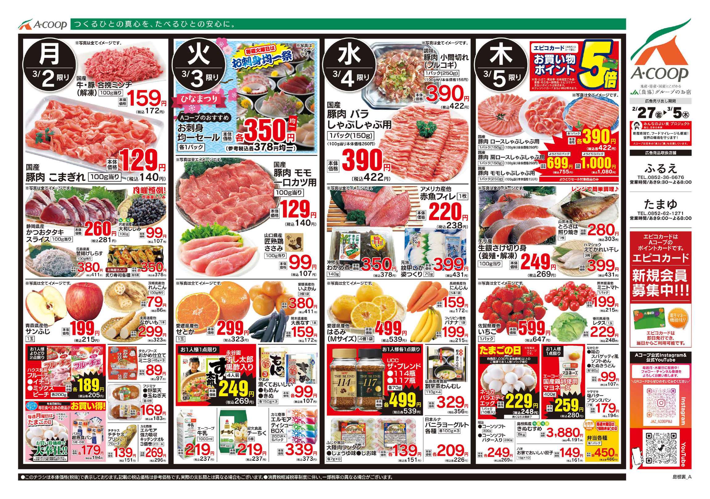 Aコープふるえ店のチラシ