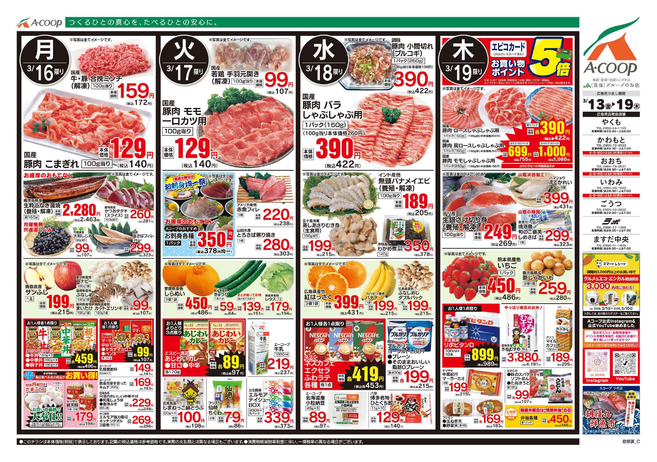 Aコープいわみ店のチラシ