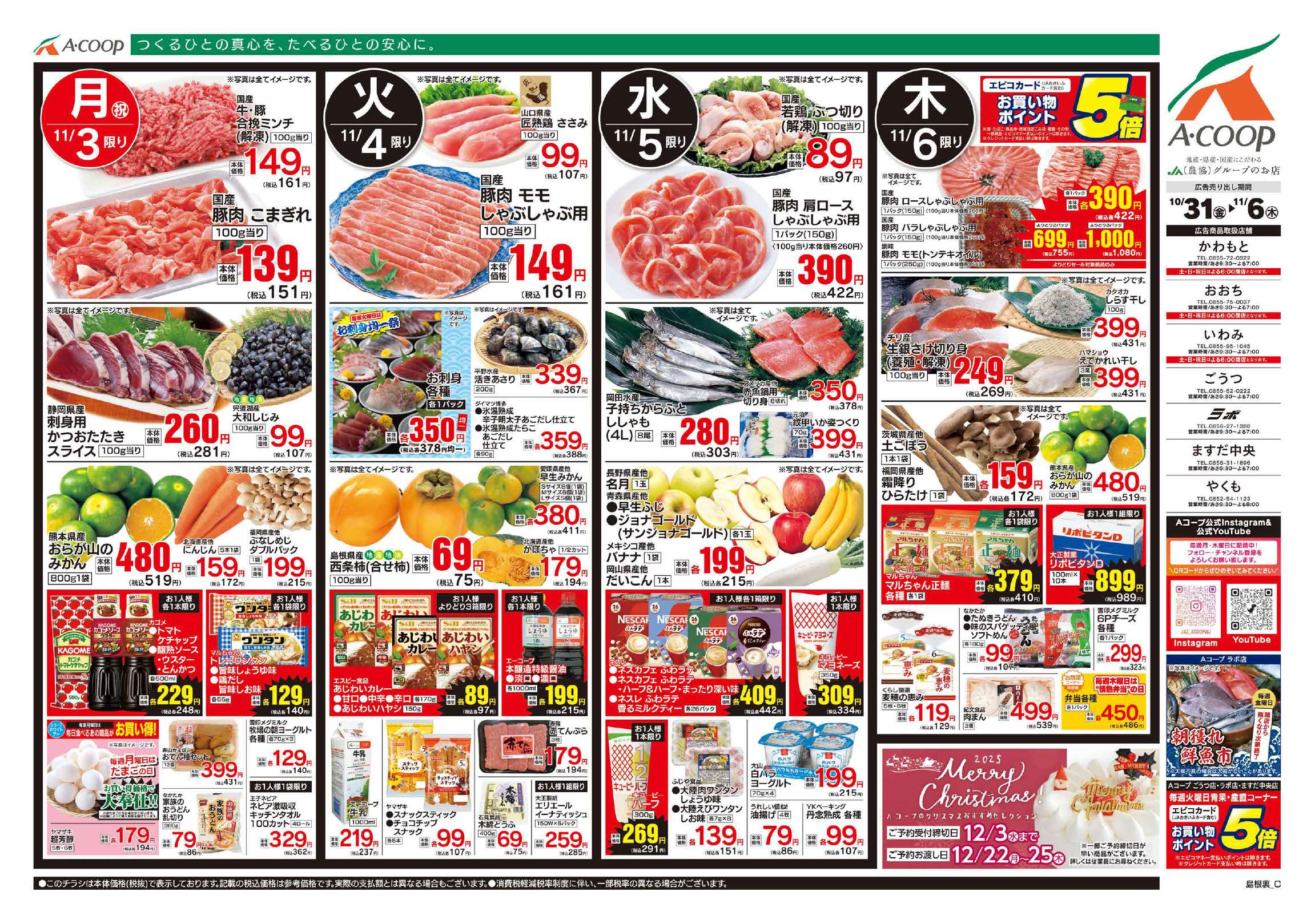 島根県の西のはしに位置する益田市は、人口約5万人の中核の町です。アムスメロンは全国的に有名、鮮魚、野菜は地元産を取り揃え、活気ある店です。津和野、萩の通り道です、是非お越しください。